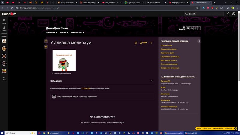 Одна из новых страниц ДимаЦип Вики. (Крестик добавил я в редакторе, чтобы на всякий случай страницу не удалили)